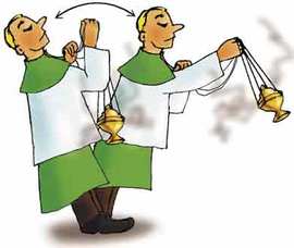 Kadzidło- Wonna mieszanina żywicy i ziół, spalana w kadzielnicy podczas celebracji liturgicznych, np. na Mszy św., na okadzenie księgi Ewangelii, paschału, biskupa itd.
